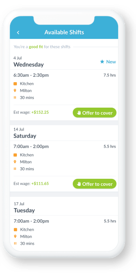 Employees can view their schedule, clock-in via GPS, leave end-of-shift feedback, and offer up shifts to swap — job satisfaction goes up, and time spent managing call outs goes down.